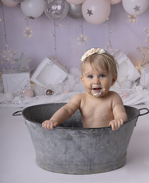 La séance dure environ 1h de prises de vues avec votre enfant de 1 an ou 2 ans. Je mets à votre disposition un décor et des accessoires adaptés au moment ainsi qu’un gâteau inclus dans la prestation.